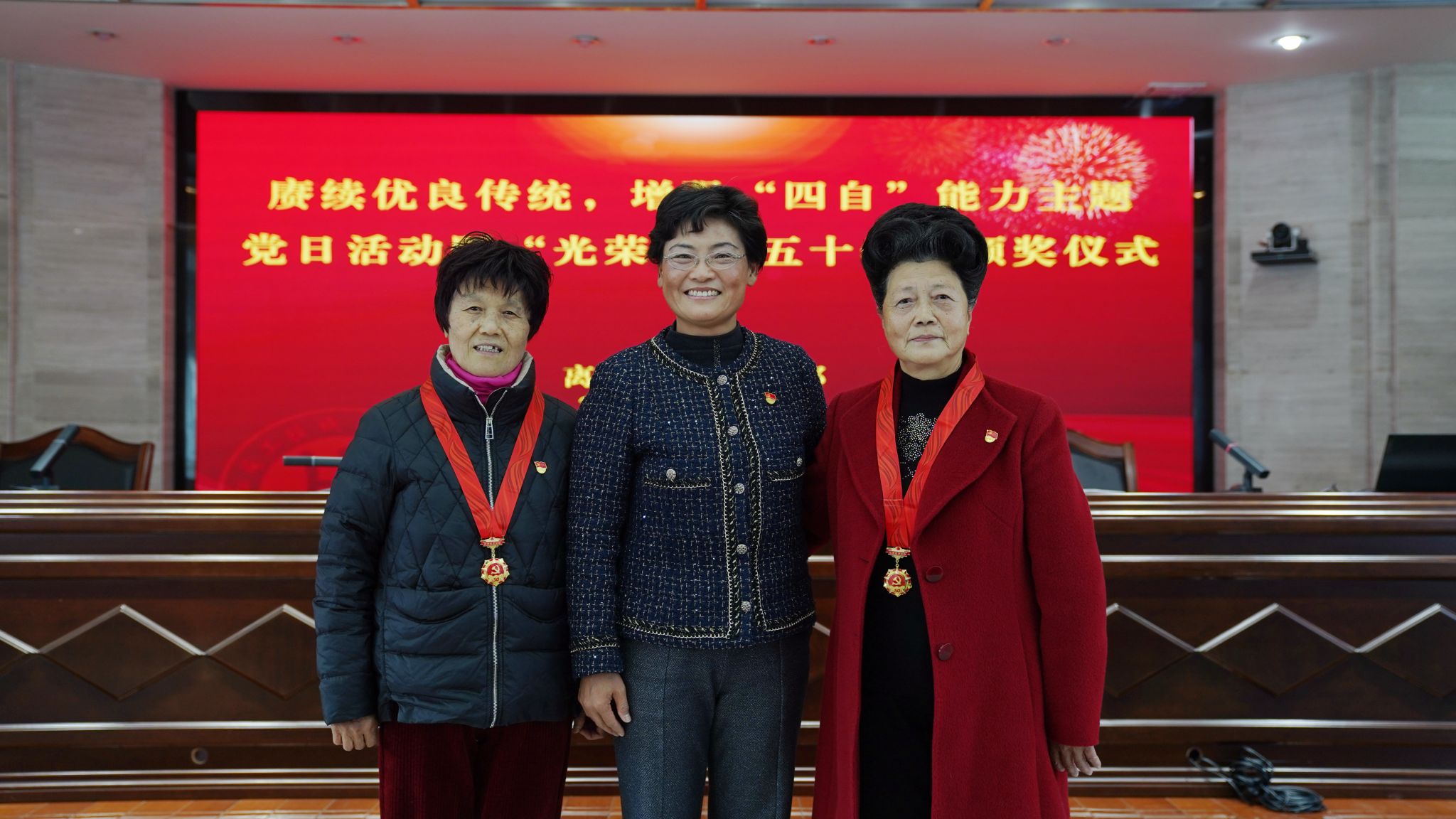 钱锁梅报告了学校今年下半年的主要工作和所取得的成绩,对支部党员给予学校工作的关心和支持表示感谢。党员同志们为学校所取得的成绩感到欢欣鼓舞,表示将一如既往努力为学校事业的发展贡献力量。钱锁梅还为今年获得“光荣在党50年”的张红英、丁兆玲两位同志佩戴了荣誉奖章。(离退休直属党支部 杨林/文 张震/图 孙晶晶/推荐 仲岑然/审核)