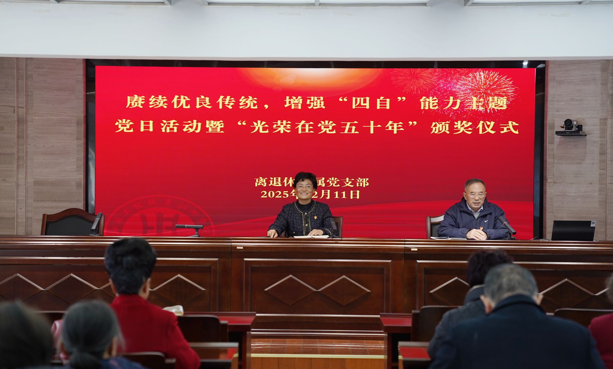 12月11日,离退休直属党支部在行政楼二楼会议室开展“赓续优良传统,增强‘四自’能力”为主题的党日活动。50多位离退休党员参加活动。活动由支部书记张震主持,学校党委书记钱锁梅受邀参加活动。