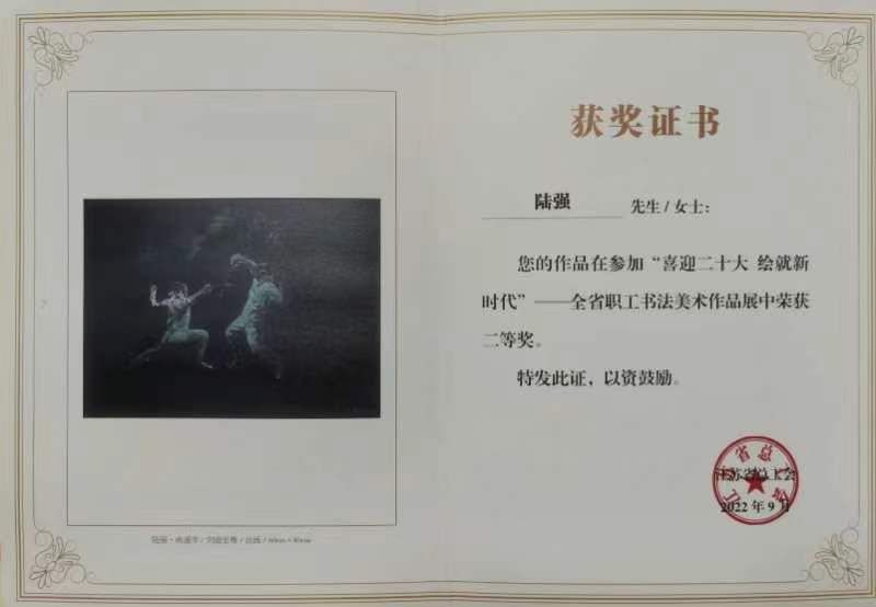 2022年九月,油画作品《剑道至尊》参加“喜迎二十大绘就新时代”—全省职工书法美术作品展获二等奖。(省级)